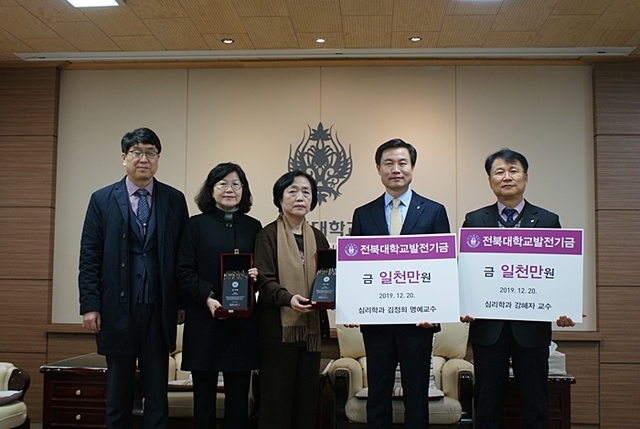 전북대학교 심리학과 김정희 명예교수와 강혜자 교수가 학교발전기금으로 각각 1000만 원을 기탁했다.