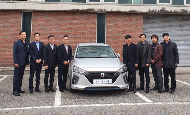전북 전주비전대학교가 26일 현대자동차(주) 전주서비스센터로부터 친환경차와 아이오닉 하이브리드 전기차(HEV) 1대를 기증받았다.