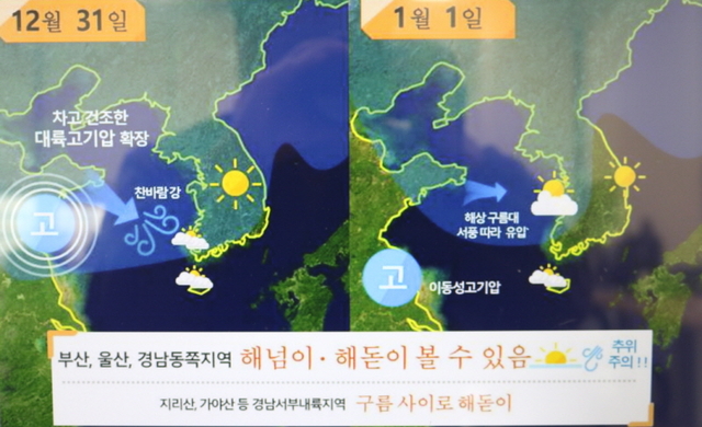 2020년 해돋이 역시 지리산과 가야산 등 경남서부 내륙지역은 구름 사이로 그 밖의 경남동쪽지역은 대체로 맑아 해돋이를 볼 수 있겠다.