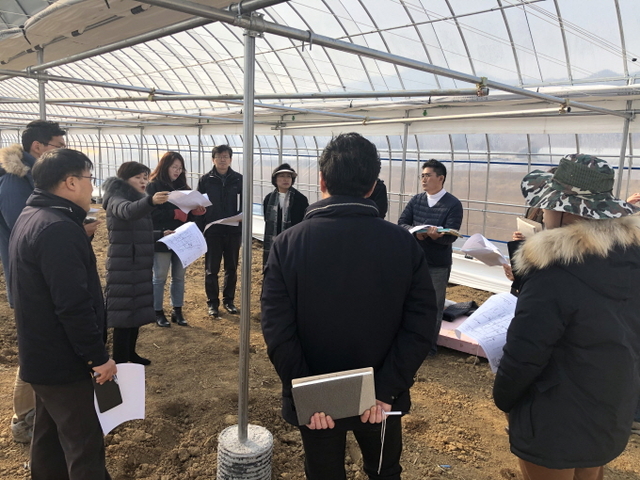 농업기술센터소장과 기술보급과 전 직원은 지난 2일 2020년도 시무식을 마치고 새해 첫 업무로 과학영농실증포 현장을 방문했다. 참석자들은 자신의 업무와 관련한 시범포 운영계획을 수립하기 위해 서로의 의견을 공유했다.