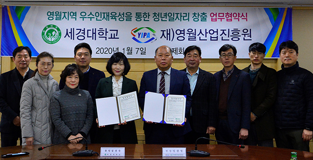영월산업진흥원(원장 엄광열)은 지난 7일 세경대학교(총장 심윤숙) 국제회의실에서 세경대와 영월지역 우수인재육성을 통한 청년일자리 창출을 주요 내용으로 하는 업무협약식을 가졌다.