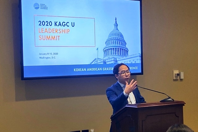 올해도 지난 8일부터 2박3일 동안 KAGC U Leadership Summit(한인 대학생 대표자 회의)를 진행했다. 9일 오전 강연도 이 행사 중 한 프로그램이었다. 이날 강연에는 앤디 김 의원 이외에도 그레이스 맹 (민주, 뉴욕 6선거구), 길 시스네로스 (민주, 캘리포니아 39선거구), 롭 우달 (공화, 조지아 7 선거구), 주디 추 (민주, 캘리포니아 27선거구), 아미 베라 (민주, 캘리포니아 7선거구), 젠 셔코우스키 (민주, 일리노이 9선거구) 등 7명의 현역 의원이 참석했다. 이날 참석한 의원들은 미국 내 한인 사회의 정치적 과제들인 입양인시민권법, 이산가족상봉법 등을 공동 발의한 의원들이기도 하다.