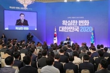 지난해 한국 경제 최대 화두 중 하나였던 이른바 '타다 논쟁'과 관련해 문 대통령은 "정부는 규제 샌드박스나 규제 특구 등의 대책으로 세계 어느 나라보다 규제 혁신에 속도를 내고 있다"면서도 "다만 타다 문제처럼 신구 산업 간 사회적 갈등이 생기는 문제를 아직 풀지 못했다"고 한계를 인정했다.