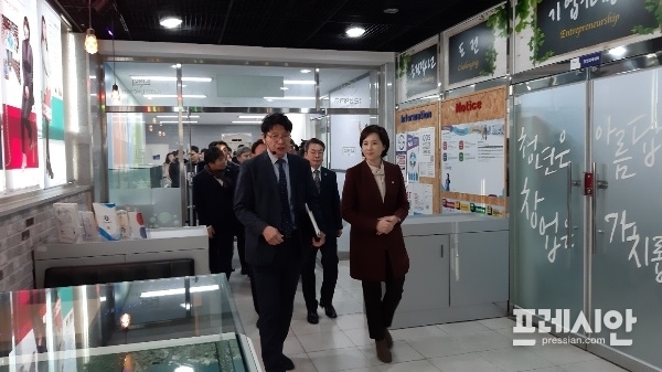그는 군산대에서 운영하는 디자인팩토리와 3D프린팅, S/W융합교육센터를 방문하고 군산대 산학협력관 내 청춘당(창업 지원 플랫폼)에서 지역연계 주요 산학협력 성과발표를 위한 PPT 보고회와 간담회에 참석했다.