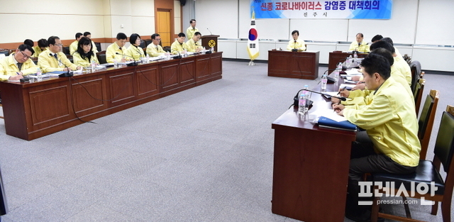 경남 진주시는 28일 조규일 시장 주재로 시청 상황실에서 신종 코로나바이러스 감염증과 관련해 긴급 대책회의를 열었다. 조시장은 관계자로부터 신종 코로나바이러스 대응 현황을 보고 받고 각 분야별로 적극적이고 선제적인 대처를 지시했다.