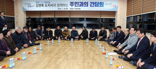 김영록 전라남도지사는 지난 30일 올 들어 첫 민심탐방지로 광양 진상면 지랑마을을 방문해 마을주민과 항만 관련 종사자와 잇따라 민박간담회를 가졌다.