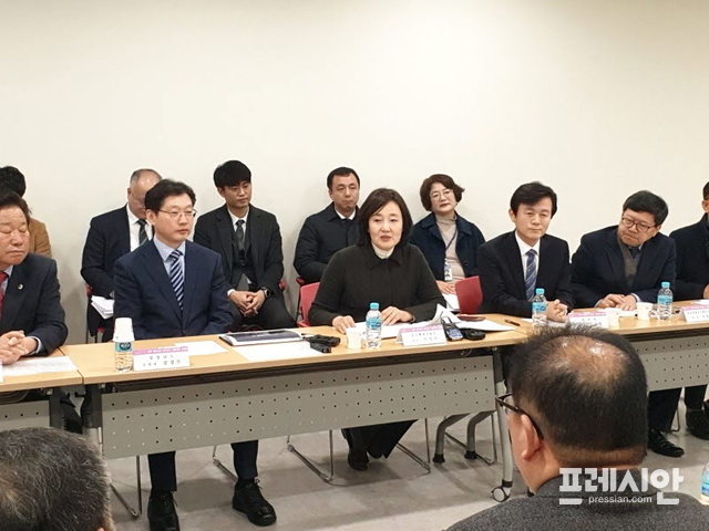 ▲3일 박영선 장관이 진주중앙시장 상인들과 간담회를 가지고 있다.ⓒ프레시안(김동수)