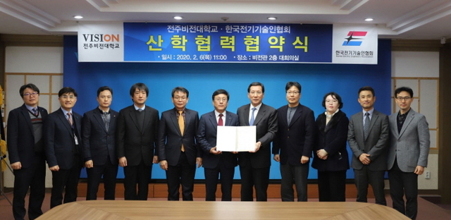 전북 전주비전대학교 신재생에너지과와 한국전기기술인협회 전북도회가 6일 전북도 새만금 신재생에너지 허브의 성공적 자리매김을 위해 상호교류 협력을 목표로 하는 협약을 체결했다.