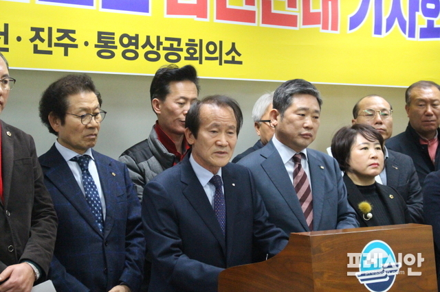 정기현(사천), 금대호(진주), 이상석(통영) 회장은 10일 사천시청 브리핑룸에서 기자회견을 갖고 “대한항공이 2015년 적자를 핑계로 노선 폐쇄를 운운하더니 2019년에 이어 올해도 적자노선 정비 라는 명분으로 사천~김포간 운항 횟수를 줄인다고 겁박하고 있다"고 비난했다.