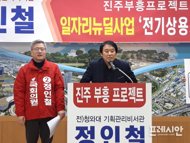 정인철 진주乙 국회의원 예비후보(前 청와대 기획관리비서관)는 11일 진주시청 브리핑룸에서 기자회견을 갖고 “일자리 창출를 위한 뉴딜 사업을 적극적으로 추진하겠다”고 밝혔다.