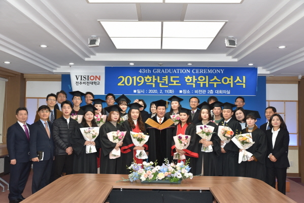 전북 전주비전대학교가 11일 1407명(전문학사 1140명, 학사 267명)의 졸업생들에 대한 '제43회 학위수여식'을 가졌다.