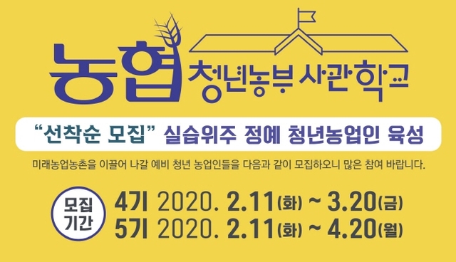 전북농협이 농협중앙회가 실습위주 정예 청년농업인 육성을 위한 '청년농부사관학교' 4·5기 교육생을 모집한다고 14일 밝혔다.