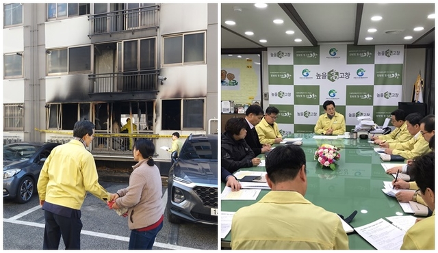 유기상 군수는 이날 화재현장을 찾아 부상자 가족들과 피해 가족을 위로하고 신속한 거주지원 대책을 약속했다.