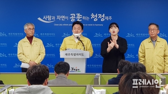 원희룡 도지사는 이날 오전 코로나19 대응과 관련된 모두 발언에서 "제주도는 이번 코로나 사태 초기부터 도 자체적으로 최상위 위기대응 단계를 설정하고 정부 방침 이상으로 강도 높게 대응해 왔지만 외부의 바이러스 유입으로 지금까지 2명의 확진자가 발생했다"고 말했다.