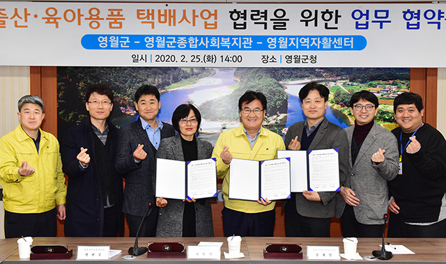 강원 영월군은 25일 영월군종합사회복지관, 영월지역자활센터와 ‘출산・육아용품 택배사업 협력’을 위한 업무협약식을 가졌다