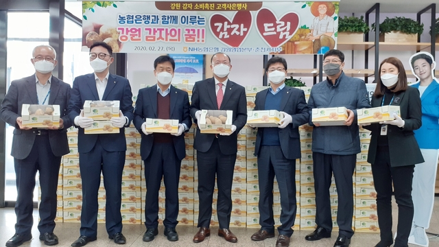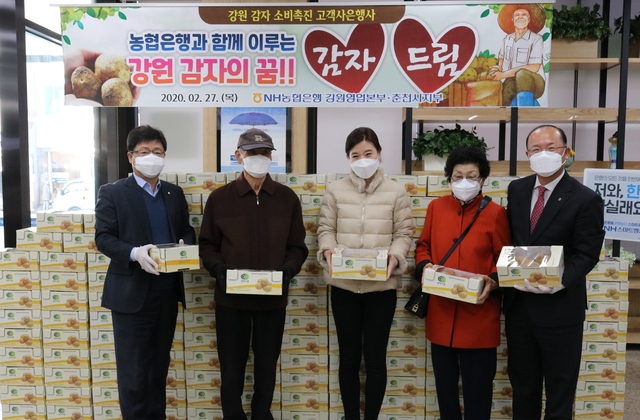 NH농협은행 강원영업본부가 27일 코로나19 확산에 따른 경기안정과 강원 감자 판매소비 촉진을 위해 고객 사은행사를 했다.