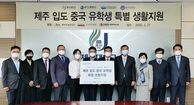 이번 협약은 코로나19 확산으로 도내 입도 중국인 유학생들이 임시 생활시설마련에 어려움을 겪고 있는 것으로 알려지면서 신라면세점 제주점 과 신라면세점 제휴 여행사 화청그룹 ㈜감마누 에서 입도 중국인 유학생 임시 생활시설제공과 임시 생활 운영 부대경비를 대학발전기금으로 지원하기로 하면서 이뤄졌다.