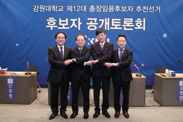 강원대학교가 11일 예정된 제12대 총장임용후보자 추천 선거를 앞두고 첫 공개토론회를 개최했다.