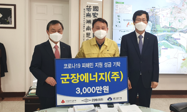 전북 군산 군장에너지㈜가 3일 '코로나19' 위기를 극복하기 위해 군산시에 성금 3000만 원을 기부했다.