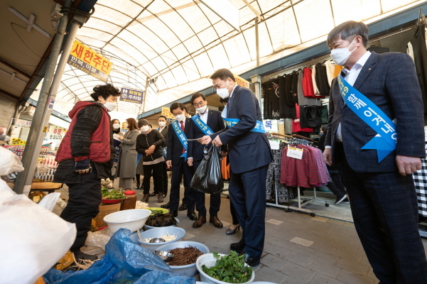 이성란 부행장과 임재원 부행장을 비롯한 10여 명의 임직원들은 이날 모래내시장과 신중앙시장을 방문해 손소독제 100여 개를 상인들에게 전달하고, 1000만 원 상당의 물품을 구매했다.