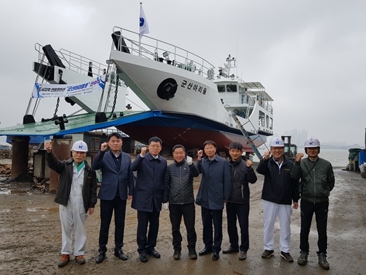 전북 군산시가 도서지역 연료운반선인 '군산아리울호'를 진수했다고 11일 밝혔다.