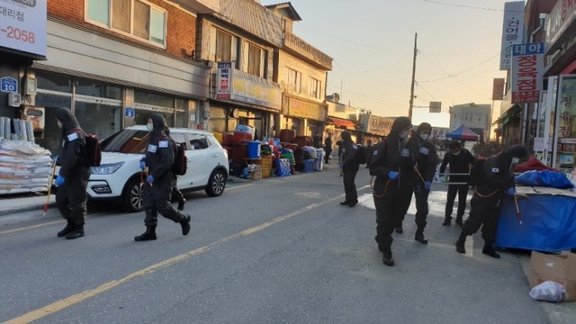 전북 군산에 있는 9585부대 제1대대 장병 20여 명은 12일 관내 다중 이용시설인 대야 전통시장의 방역소독을 지원했다.