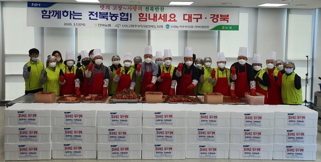 전북농협이 '코로나 19'로 어려움을 겪고 있는 경북 지역에 반찬으로 기운을 보탰다.
