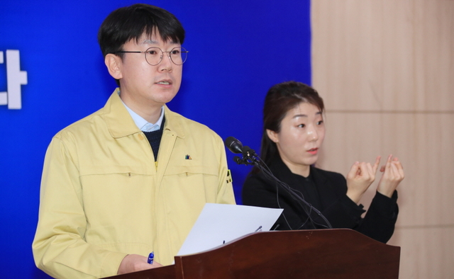 ▲김명섭 경남도 대변인이 코로나19에 대해 브리핑을 하고있다. ⓒ경남도