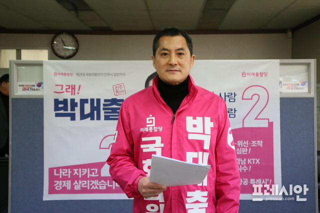 박 의원은 코로나19 사태로 기자회견이 아닌 서면을 통해 출마선언을 했다. “新 진주대첩으로 나라 지키겠다”며 “강소(强小)특별시 진주로, 진주 大도약을 이루겠다”고 출사표를 던졌다.
