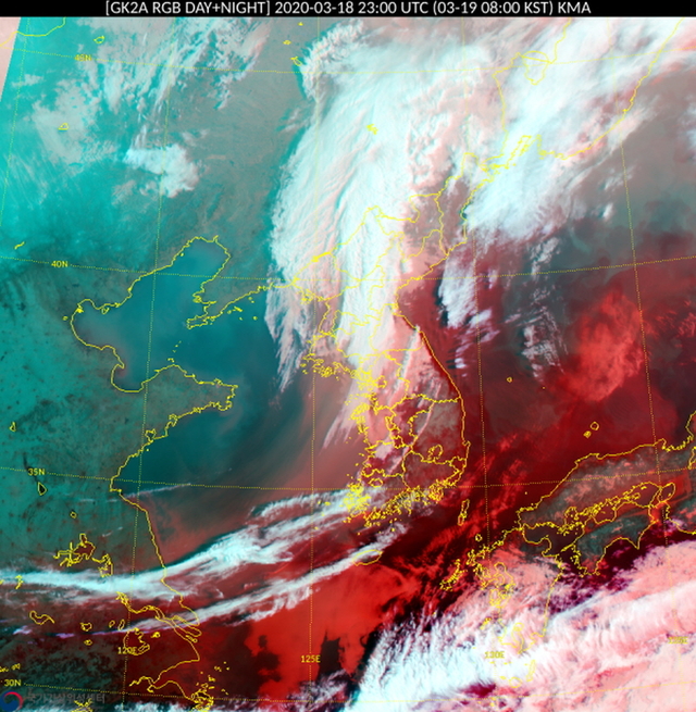 ▲2020년 3월 19일 오전 8시 위성사진. ⓒ기상청