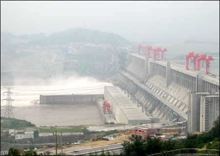 20일 준공한 싼샤 댐은 높이 185m, 길이 2309m의 대형 댐이다. 이 댐 건설로 서울 면적(605㎢)의 2배 가까이 되는 1084㎢ 면적의 담수호가 생기며, 이 댐에 가둘 수 있는 물의 양은 393억t으로 우리나라의 연간 용수 이용량 330억t을 훌쩍 넘는 규모다. 현지 언론들이 "만리장성 이후 2300여 년 만의 중국 최대 '역사(役事)'"라고 호들갑을 떨 만한 규모다.