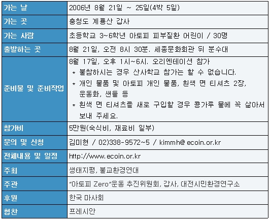 <프레시안>도 함께하는 '아토피 Zero 산사학교'의 일정은 아래와 같다.