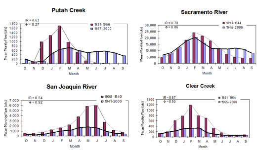 | ▲ 댐 건설 이전과 이후 월평균 유량의 변화를 보여주는 그래프. ⓒRandolf Hester |