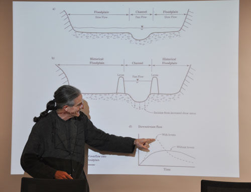 자연스러운 홍수 유량의 중요성은 이미 외국의 하천학자들 사이에서도 강조되고 있다. 세계물정책프로젝트(Global water policy project·GWPP) 의장인 샌드라 포스텔은 그의 책 <생명의 강>(최동진 옮김, 뿌리와이파리 펴냄)에서 "주기적으로 발생하는 홍수는 대단히 효율적으로 퇴적물을 분배하고, 어류 등 강에 서식하는 생물들에게 서식지를 제공한다"며 "홍수 조절을 위해 세운 댐과 제방은 오히려 하천의 자연 유량을 평준화시켜 생태계를 교란시킨다"고 지적했다.