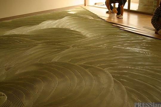 지난 1일 찾은 서울 외곽의 한 아파트 건설 현장. 수개월 후 입주를 앞둔 이 아파트 공사장에서는 온돌마루 까는 작업이 한창이었다. 통로마다 온돌마루, 접착제 등이 가득 쌓여 있었다. 비좁은 자재 더미를 헤쳐가며 소리 나는 곳을 찾았다. 온돌마루가 깔리는 현장을 보려면 그 소리를 따라가야 한다는 조언에 따른 것이었다.