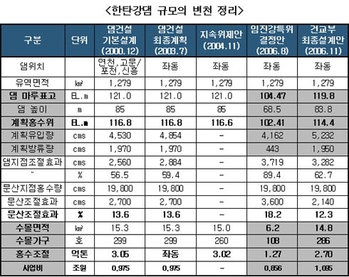 그러나 11월이 되어 건교부가 발표한 한탄강 댐 설계를 보면, 건교부는 국무총리실이 임진강 유역의 홍수대책으로 건설하기로 최종 결정한 한탄강 댐의 규모와 수몰면적보다 2배 이상 큰, 전혀 다른 댐 건설을 기획하고 있었다. 국무총리실이 결정했던 댐은 온데간데 없고 난데없이 새로운 댐이 나타난 것이다.