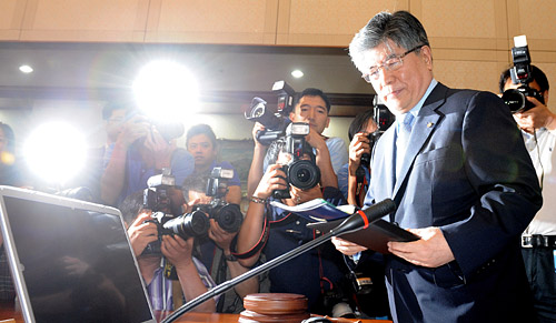 | ▲김중수 한은 총재가 9일 오전 금통위 회의실에 들어서고 있다. ⓒ뉴시스 |