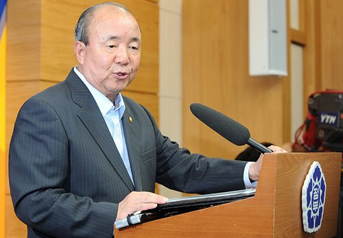 ▲정종환 국토해양부 장관이 21일 오후 경기도 과천정부청사 기획재정부 브리핑실에서 주택거래활성화를 위한 긴급 관계장관 회의 후 언론브리핑을 갖고 있다. 이번 정부 회의에서 국토부는 DTI 규제 완화를 강력하게 주문했으나 타 부처의 반대가 강했다. ⓒ뉴시스