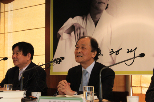 | ▲ 작가 조정래(사진 가운데). 그는 올해 예순 일곱이라는 나이가 믿기지 않을 만큼 힘찬 목소리로 '경제 민주화'에 대해 이야기했다. ⓒ프레시안 |