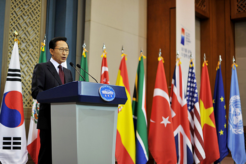 | ▲이명박 대통령은 이번 G20 서울 정상회의에서 환율, 국제공조, 개발, 금융안전망 등 주요 의제가 좋은 합의를 끌어낼 것으로 전망했다. ⓒ뉴시스 |