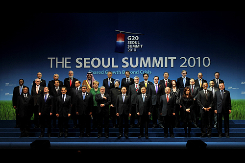 제5차 주요 20개국(G20) 정상회의는 12일 채택한 '서울선언'에서 미국과 중국의 '환율전쟁'을 해결하지 못하고 "경상수지를 지속 가능한 수준"으로 유지하자는데 합의했다. 경주 재무장관회의에서 논의된 경상수지 가이드라인은 내년 프랑스 칸에서 열릴 제6차 G20 정상회의에서 구체안을 만들기로 했다.