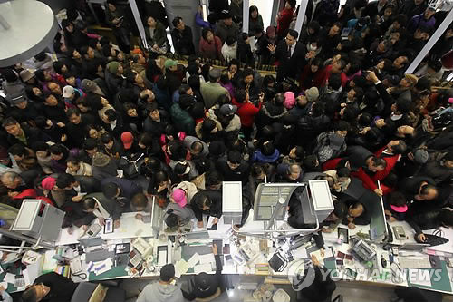 | ▲ 부산저축은행이 17일 금융당국으로부터 6개월 영업정지를 당한 가운데 계열사인 부산 해운대구 우동 부산2저축은행에 예금자 수천명이 몰려 북새통을 이루고 있다. 이 은행지점장이 나서 영업정지가 되지 않았다고 해명했으나 예금인출을 원하는 사람들이 몰리면서 대기번호표 1000여 장이 순식간에 동이나기도 했다. ⓒ연합뉴스 |