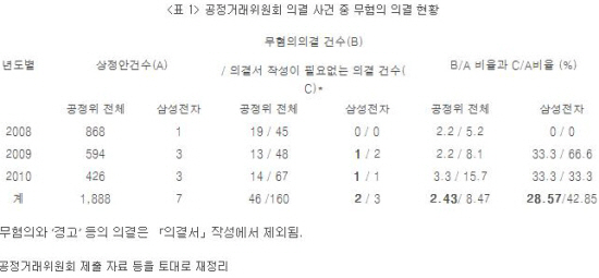 한편, 공정위는 이날 해명자료를 통해 "지난해 두 차례에 걸쳐 삼성전자에 부과된 과징금을 가산하지 않은 것은 벌점이 가중 기준(경고 이상 조치 3회, 벌점 5점)에 미달했기 때문"이라고 밝혔다.