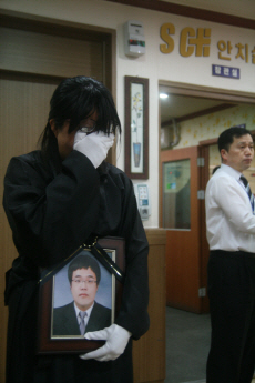 | ▲ 지난 1월 11일 충남 아산 탕정면 삼성전자 기숙사 13층에서 뛰어내린 고(故) 김주현(25) 씨의 영정. ⓒ프레시안(김봉규) |