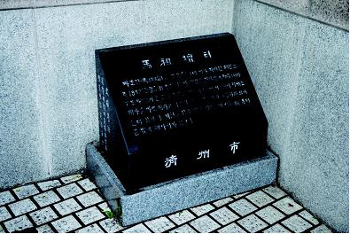 | ▲ 제주시 칼 호텔 자리의 마조단 터 표지석. 말 관련 방성 별자리가 비추는 제주도와 서울 살곶이 목장에서 말의 건강과 번성을 위한 제사를 지냈다. ⓒ 안홍범 |