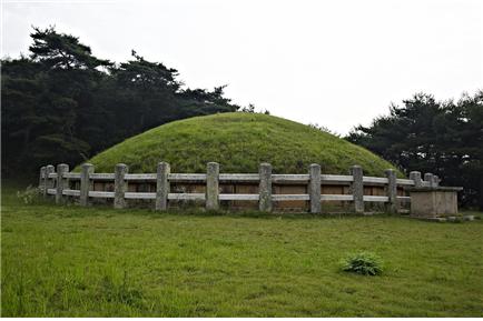| ▲ 성덕왕릉. 능을 둘러싼 두 줄의 돌란대(돌난간) 건축은 불국사의 돌난간과 느낌이 같다. ⓒ 이순희 |
