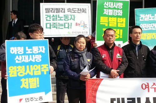 한국노총도 15일 논평을 통해 "노동자의 산재 사망을 막고 국민의 안전과 행복을 지키기 위해 고용노동부는 특별 근로 감독 등 강력한 대책을 마련하라"며 "국회 또한 산재 사망 기업을 강력히 처벌할 수 있도록 '기업 살인 특별법(기자 : 산재 사망 처벌 강화 특별법과 같음)' 제정을 더는 늦춰서는 안 된다"고 촉구했다.