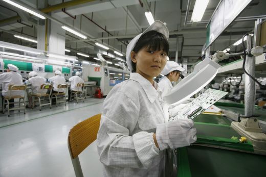 | ▲ 미국 애플사(社)의 제품을 제조하는 폭스콘의 중국 공장. 폭스콘과 애플은 노동 착취 문제로 비판받아 왔다. ⓒ로이터=뉴시스 |