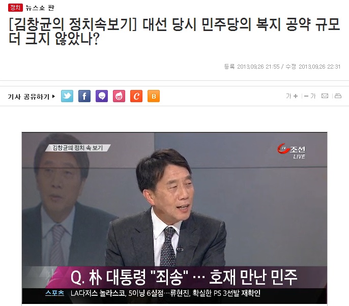 종편 뉴스에 대해서 서 씨는 "앵커가 진행하면서 의견을 넣어서 대담하는 걸 뉴스라고 볼 수 없지만, 나도 내 주관이 있으니 보수 언론임을 참작하면서 받아들일 것"이라며 "그런데 아무래도 나이가 있으니 심각한 건(시사 프로그램) 덜 보게 된다"고 말했다. 다만 그는 "채동욱 사태에는 의심의 여지가 없(이 채동욱 전 검찰총장에게 혼외 자식이 있는 것 같)고, 기초연금은 어차피 해당이 안 돼서 못 받지만 보편적 복지는 반대한다"고 말했다.
