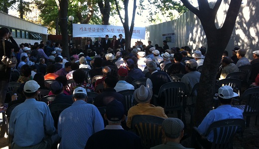 | ▲ 내가 만드는 복지국가, 노년유니온, 복지국가 소사이어티, 세상을 바꾸는 사회복지사가 2일 종묘 공원에서 '노인 만민 공동회'를 열었다. ⓒ프레시안(김윤나영) |